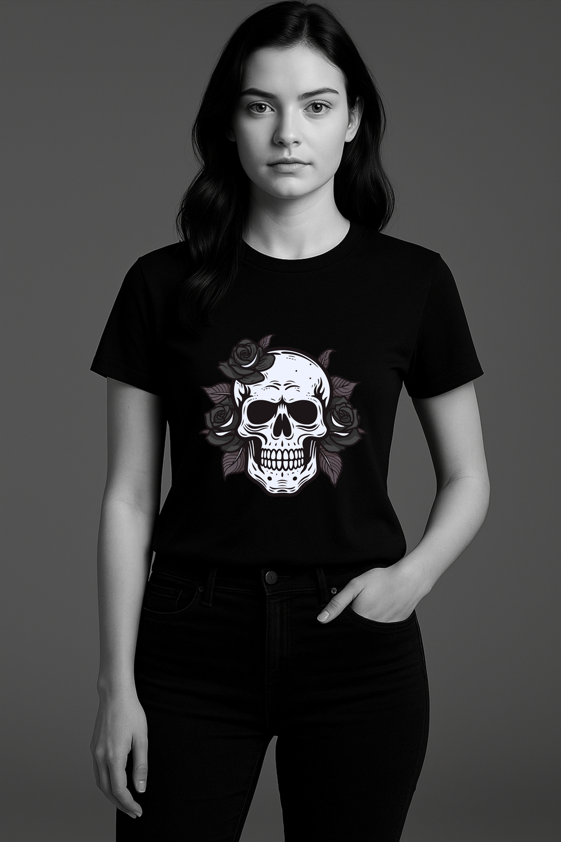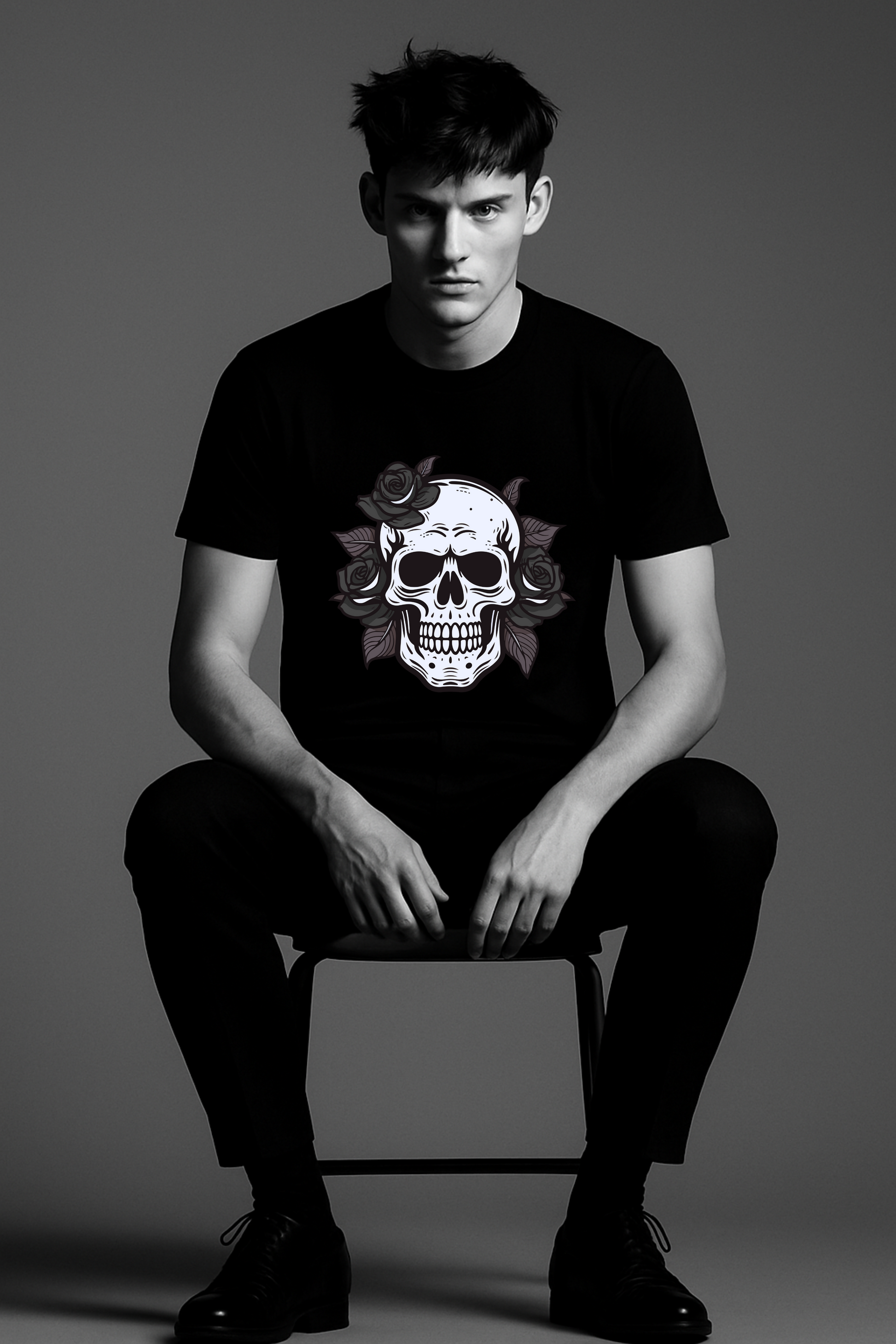 Where beauty meets the bones—Deadly Bloom fuses the stark rawness of a skull with the elegance of roses in a bold chest print. Rendered in muted whites and shadowed petals on a black tee, the design evokes life, death, and everything in between. For the ones who wear chaos like a crown and still bloom.